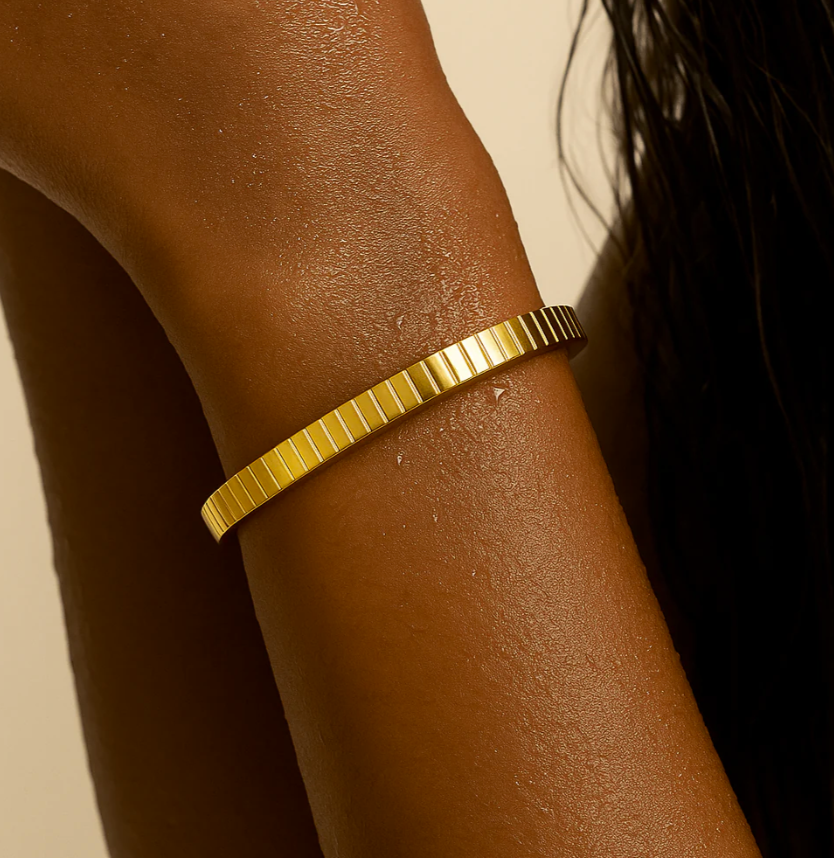 Ellie Vail jewelry is made from hypoallergenic stainless steel. Stainless steel can be exposed to an average amount of water/sweat.