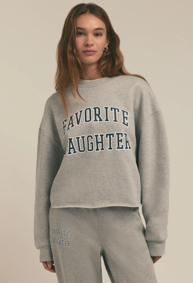 Give it the old college try with our cropped collegiate sweatshirt. With the drop shoulder and relaxed fit, this collegiate classic will go to the head of the class (and your closet).